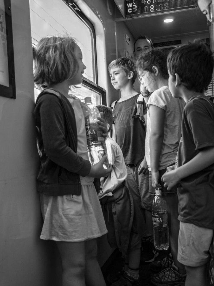 Le train couchette c’était génial !! J’ai adoré m’endormir en écoutant le roulis du train. On ne sait jamais trop si on dort vraiment, j’ai eu le sentiment d’avoir dormi à moitié mais après coup la nuit n’a pas été trop mauvaise. Les enfants étaient tous très contents de cette nouvelle expérience. Nous avons été réveillé par un employé nous apportant le petit déjeuner : spaghetti bolognaise ou feuilleté salé au pâté… vraiment degueu… sauf pour Noémie.