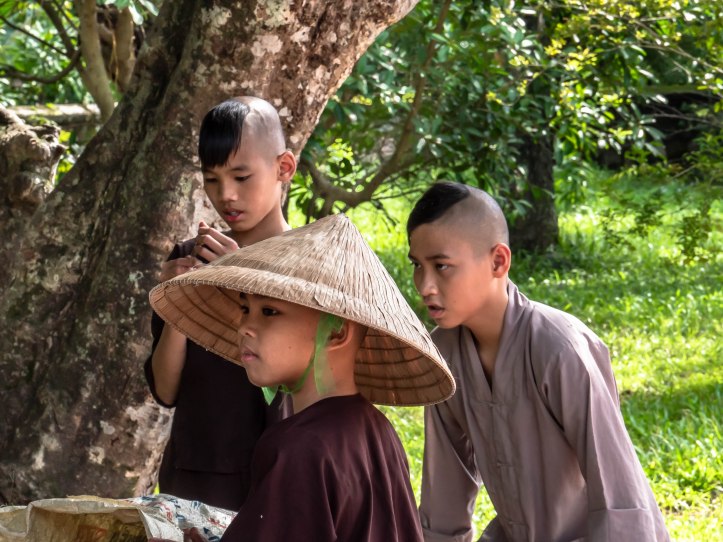 Nous sommes ensuite allés vers un lieu appelé Lãng Minh Mang. C’est là que se trouve enterré un empereur de la dynastie des Nguyen. Ce lieu nous a beaucoup plu. Il y a une succession de pagodes plus ou moins hautes qui donnent une jolie vue d’en haut sur la pagode suivante et ainsi de suite. Marco y a rencontré un couple de Mexicains vivant à Singapour.