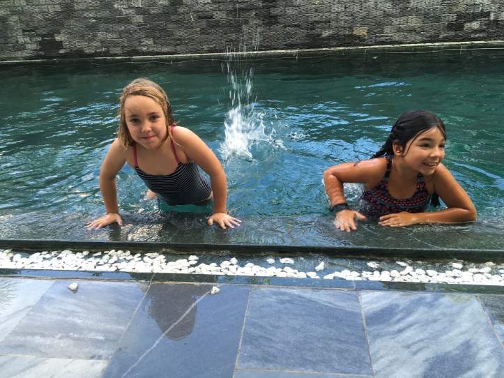 Une fois un magnifique petit déjeuner avalé ( énorme buffet de l’hôtel ) les enfants ont filé dans la piscine essayer leurs nouveaux cadeaux. Nous avons avons passé la journée du 25 décembre à ne rien faire. Le temps n’était pas formidable mais il ne pleuvait pas. Anna et Noémie passeront des heures interminables à jouer dans la piscine. Augustin allait mieux et semblait être sorti d’affaire.