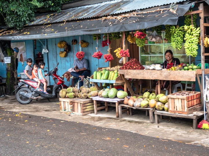 Nous nous sommes arrêtés déjeuner à Batutumonga. De là nous avions une très belle vue sur la montagne et les rizières avec au fond la ville de Rantepao d’où nous étions partis le matin même. Après le déjeuner nous sommes restés un peu sur place.